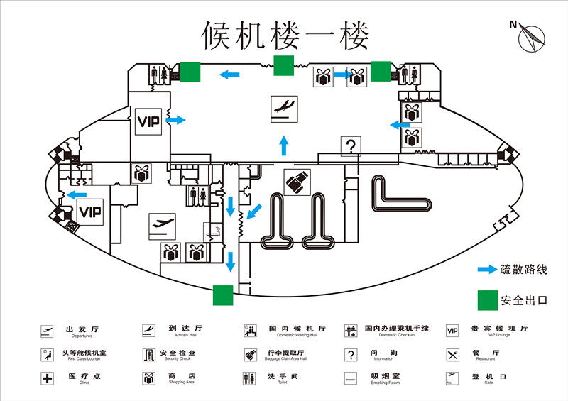 候机楼服务设施布局图(如下)
