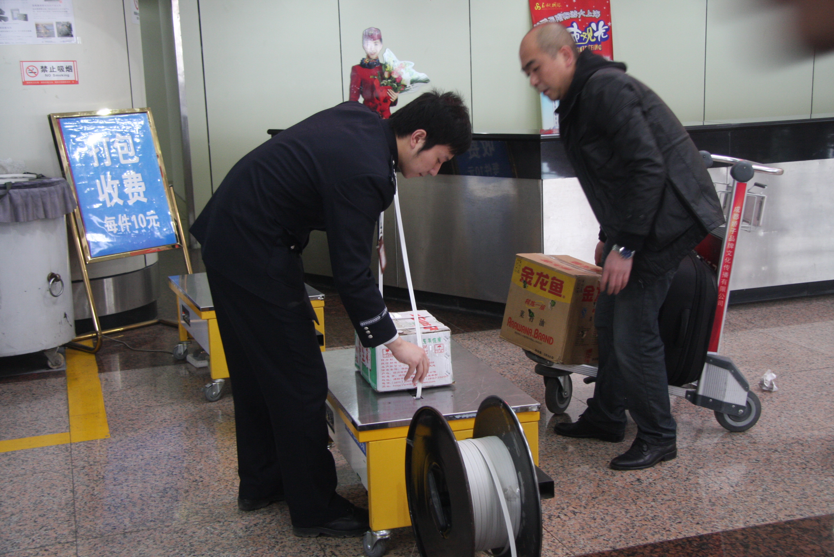 行李打包:在旅客自愿的前提下为其提供行李打包的服务